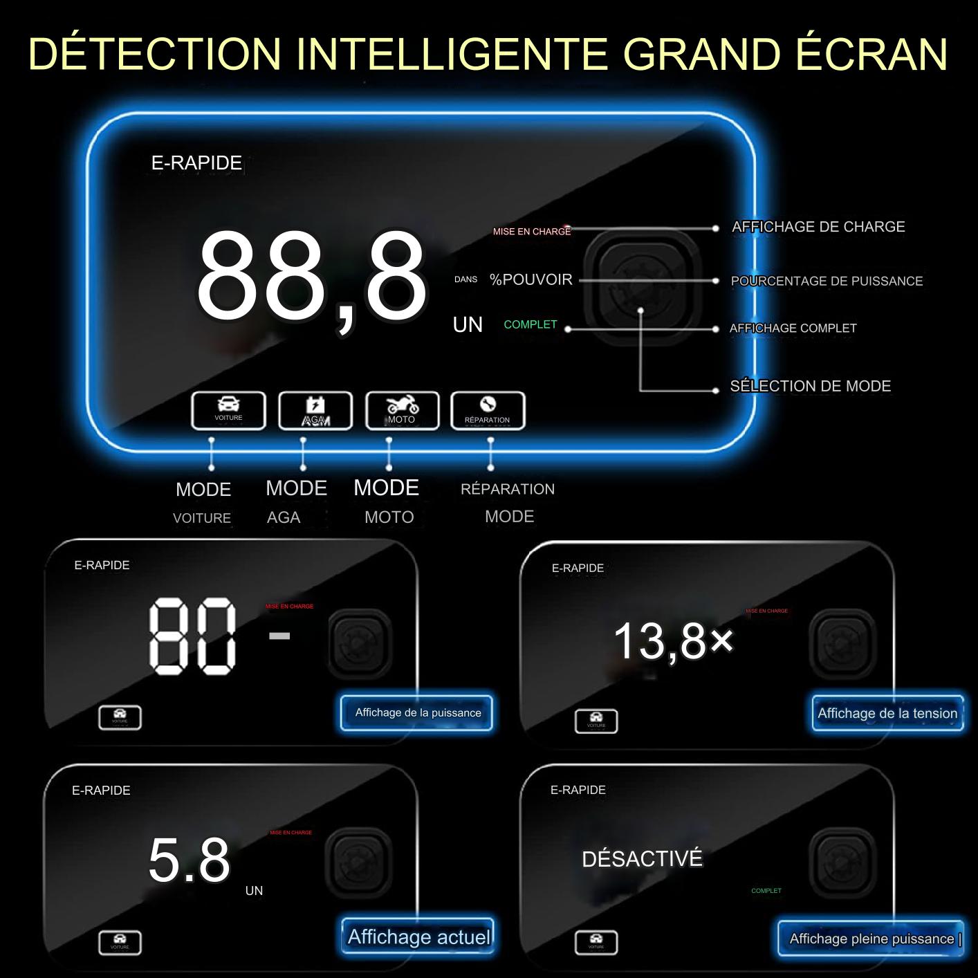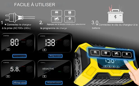 Grâce à sa technologie avancée, ce chargeur assure une charge rapide et efficace pour les batteries de 12V, permettant une récupération rapide de la puissance.